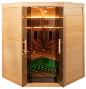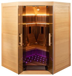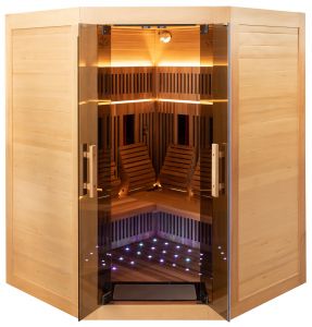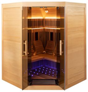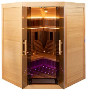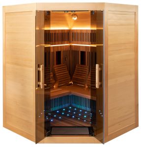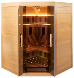 Чотиримісна кутова сауна елітної серії Hedonism edition поєднує в собі лаконічний дизайн і максимум сучасних технологій, має п'ятикутну форму, дуже простора. Сауни цієї серії відрізняються високою якістю використовуваних компонентів та новаторських рішень. З особливостей можна назвати таке: