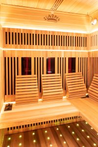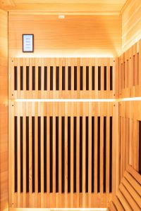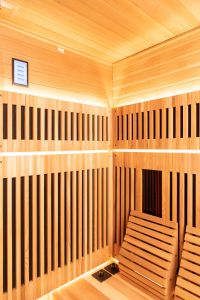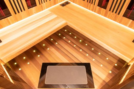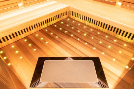 Периметральна система нагріву, зібрана з комбінації 3-х видів інфрачервоних нагрівачів: 1) карбонові нагрівачі нового покоління LOW EMF, мають найменший показник електромагнітного випромінювання з усіх існуючих ІЧ-нагрівачів, ще більш безпечні та довговічні; 2) кварцові нагрівачі мають можливість регулювання потужності регуляторами на лавці під рукою; 3) у підлозі нагрівач підвищеної температури з термоскла, дуже зручний для прибирання.