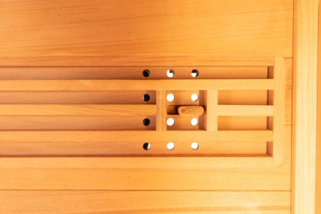 Комбінування деревин: зовні міцний Хемлок канадський, всередині дорожчий і цілющий Червоний кедр. У виробництві саун серії Hedonism edition використовується збільшений обсяг деревини.