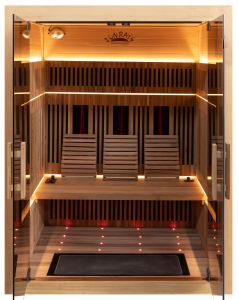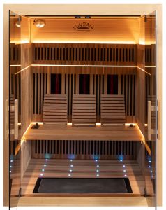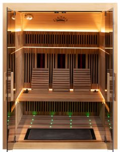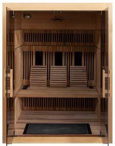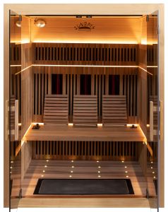 Тримісна інфрачервона сауна елітної серії Hedonism edition поєднує в собі лаконічний дизайн і максимум сучасних технологій. Сауни цієї серії відрізняються високою якістю використовуваних компонентів та новаторських рішень. З особливостей можна назвати таке: