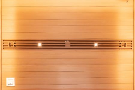 Звук аудіосистеми у сауні відтворюється за допомогою сучасних вібродинаміків. Використання таких динаміків дозволяє отримати якісний звук та естетичний вигляд стелі сауни, тому що немає необхідності робити технологічні вирізи для встановлення динаміків класичного компонування.