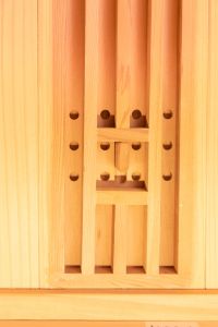 Комбінування деревин: зовні міцний Хемлок канадський, всередині дорожчий і цілющий Червоний кедр. У виробництві саун серії Hedonism edition використовується збільшений обсяг деревини.